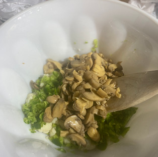 7. In a large bowl add the cauliflower, cooked Italian sausage, mushrooms, and green peppers. Toss together until well mixed.
